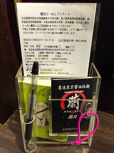 特殊設計的意見箱,除了可以放意見單、名片跟筆外,另外還有貼心的女用髮圈