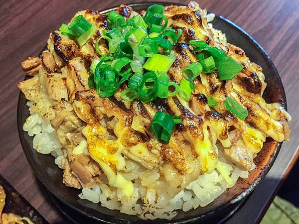 正常飯碗裝到籠起來再鋪一層炙燒過、擠上美乃滋的條狀叉燒,極鹹中帶點微甜配上乾爽的米飯